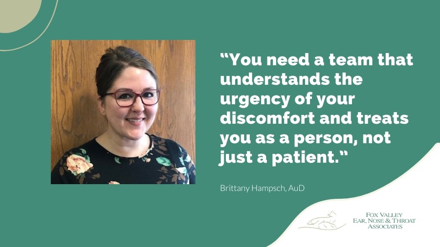 You’re in the right place. Fox Valley ENT provides community-focused, convenient care, with two board-certified physicians, four clinical audiologists, and a highly skilled team of providers, state-of-the-art technology, and a track record for improving thousands of local lives over the past 40 years.