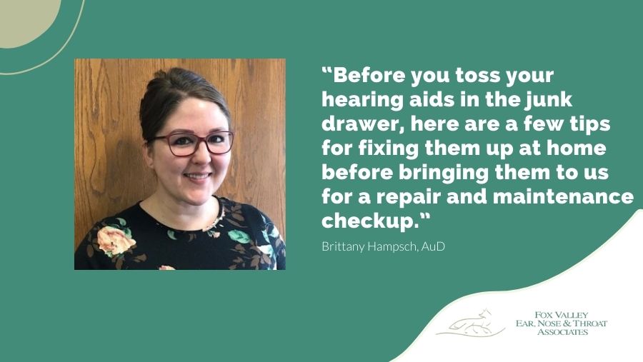 Before you toss your hearing aids in the junk drawer, here are a few tips for fixing them up at home before bringing them to us for a repair and maintenance checkup.